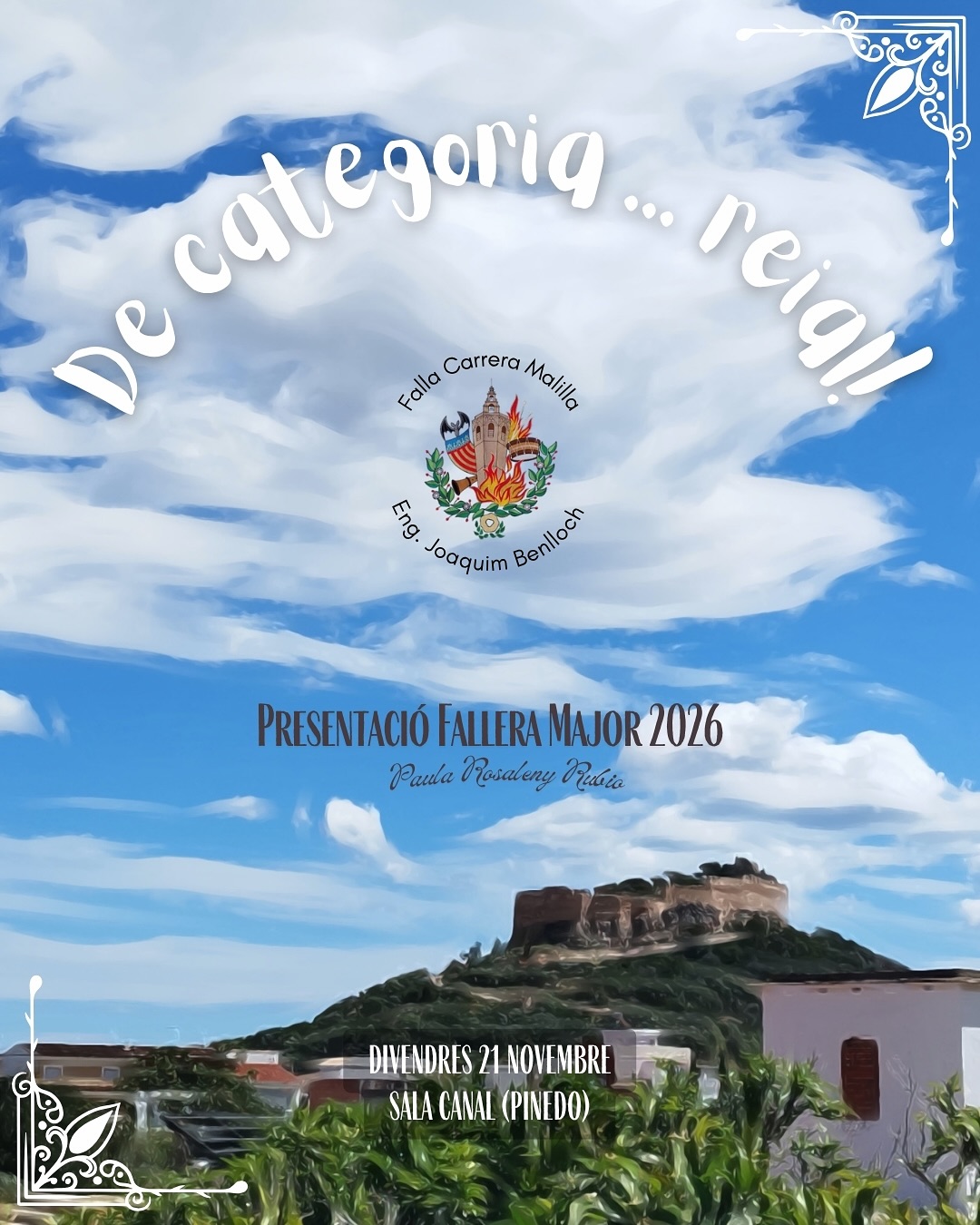 El 21 de Noviembre , a las 22h en la Sala Canal (Pinedo) será la exaltación de nuestra Fallera Mayor 2026, Paula Rosaleny Rubio.